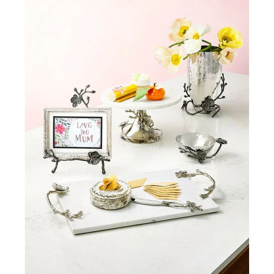 Inspired by the powerful sensuality of orchids, Michael Aram’s handmade Black Orchid collection features picture frames, bowls and more decorative accents composed of nickel-plated flowers and luxe hammered metals.