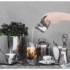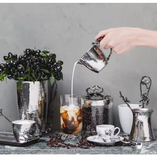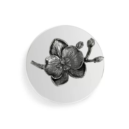 The sleek lines on this square serving tray from Michael Aram features a gorgeous black orchid detail on the corner.