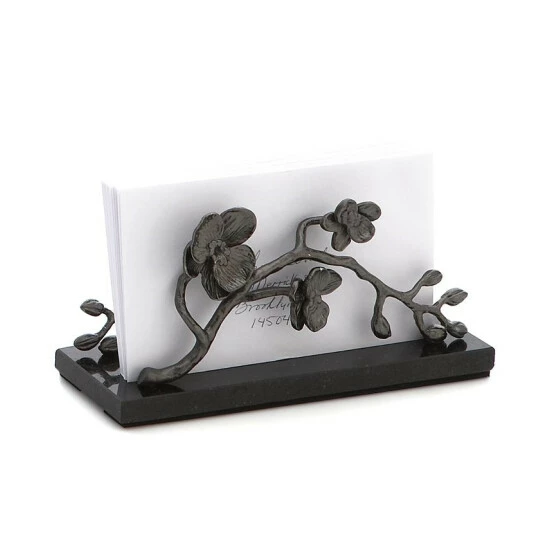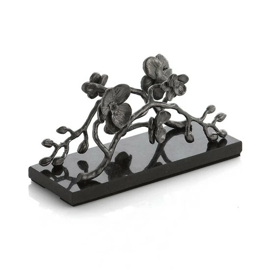Featuring black granite paired with nickel-plated blossoms, the Black Orchid napkin holder is equal parts art and serveware. Inspired by the intricacies of foliage from around the world, designer Michael Aram casts exotic orchids in an unexpectedly dark yet graceful role.