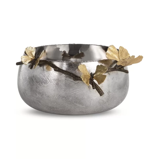 The Butterfly Ginkgo Collection celebrates the representation of flora as fauna. Michael’s fascination with a particular type of ginkgo tree, the ginkgo Biloba, or “Butterfly ginkgo”, which grows with a double leaf reminiscent of a butterfly’s wings, gave rise to a fantasia image of the plant. Executed at the highest level of handcraftsmanship, each piece is rendered in solid bronze with acid etched cocoon-shaped vessels. The pieces in the collection are a tour de force of Indian craft and capture the poetic spirit that is so deeply indicative of Michael’s work. “The first time I saw this tree, it literally looked like it had been completely overtaken by butterflies…as if they would all take flight the moment I walked too close or made a noise. The idea that the leaves could evoke the beauty of butterflies was magical to me, like trees that can metamorphose from flora to fauna in the blink of an eye.”