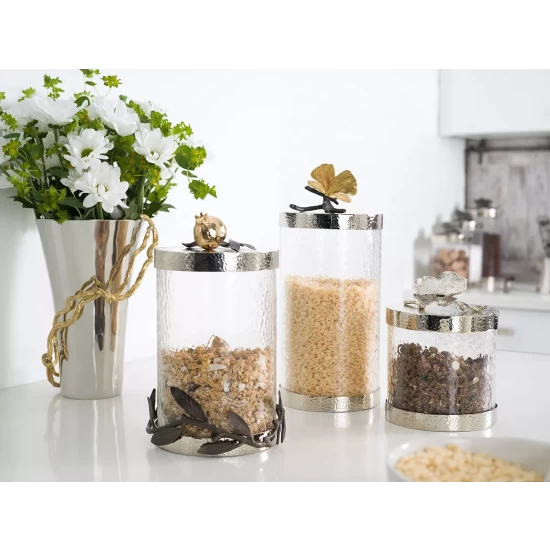 Exquisitely crafted, Michael Aram’s Butterfly Ginkgo lidded cannister captures the delicate beauty of nature with butterfly-like leaves and irresistible texture.