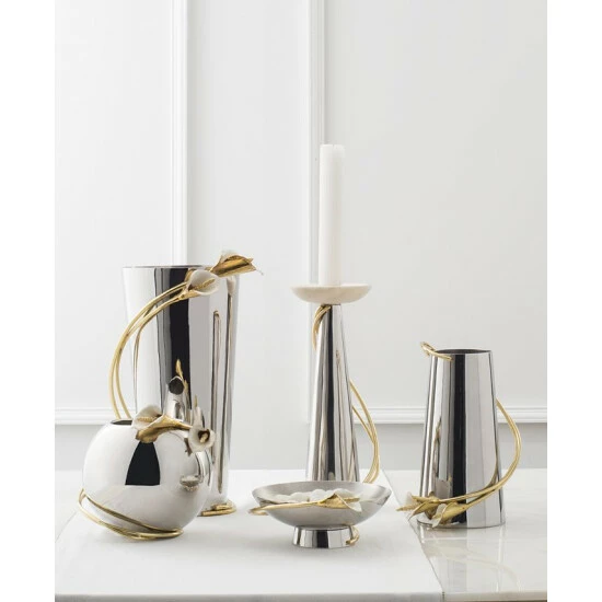 Sculptor Michael Aram’s Calla Lily Gifts Collection is inspired by the graceful beauty of the Calla Lily and offers elegance and balance for a mantel or table setting.