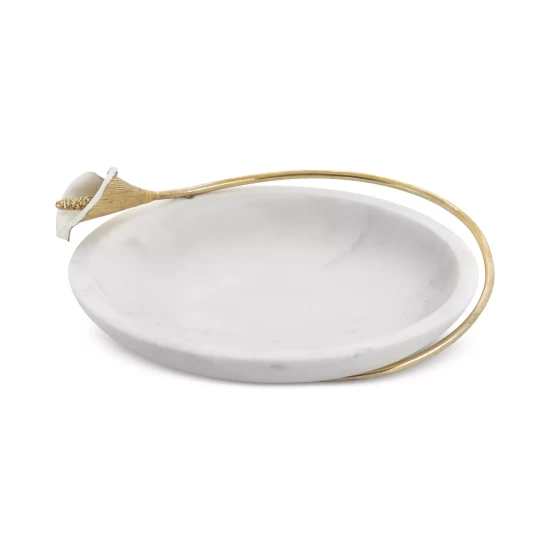 Decorated with a slender, graceful flower rendered in sculptural detail, Michael Aram’s Calla Lily marble dish can be used as a serving container for wrapped candies or as a trinket tray.