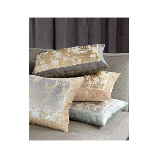 Metallic printed lace embroidered onto a silky antique velvet add dimension and natural beauty to your room.